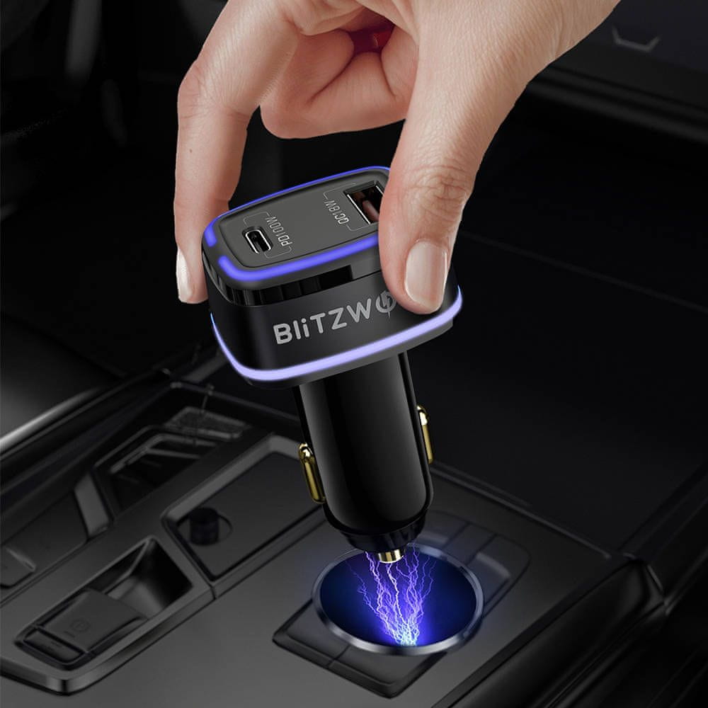 Avtopolnilec Blitzwolf BW-SD8 je opremljen z USB in USB-C priključki. Omogoča hitro polnjenje do 2 naprav hkrati in je značilna široka združljivost. Podpira protokola QC3.0 in PD3.0. Opremljen je tudi z LED osvetlitvijo ozadja in zagotavlja varno uporabo.