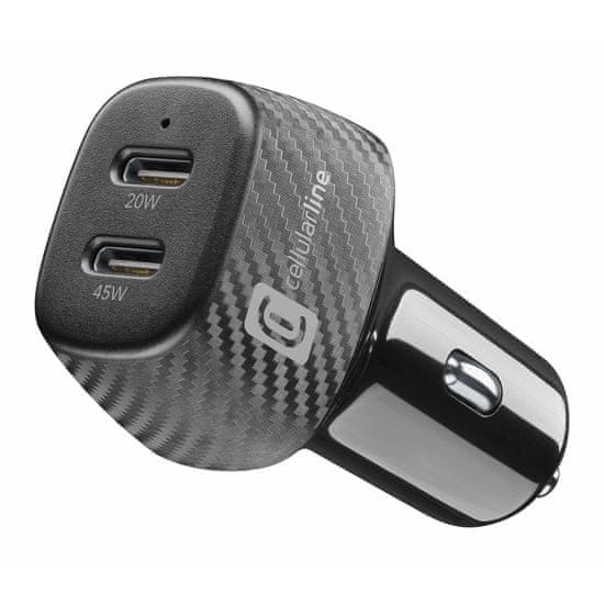CellularLine avto polnilec PD 45W + 20W, črn