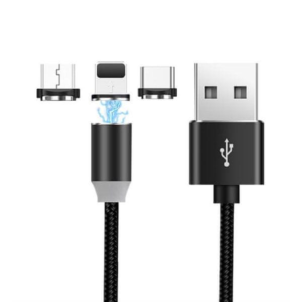 Polnilni kabel 3v1 za telefone ima na strani magneta vgrajen modri LED indikator, ki zasveti, ko se kabel priključi na telefon in ves čas polnjenja telefona. Magnetni kabel 3v1 ima tri različne USB priključke, zato da lahko polnite iz kateregakoli polnilnega mesta.