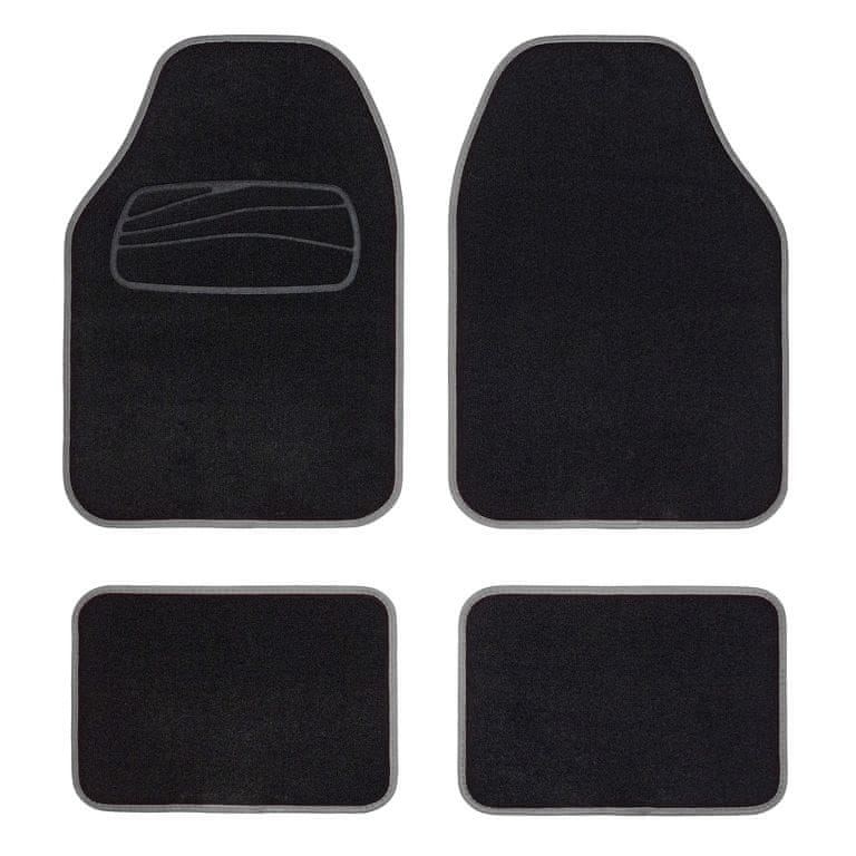 Univerzalne tekstilne avtomobilske preproge NAPOLI v sive barvi. Preproge so dobavljene v paketu 4 kosov in so primerne za večino osebnih avtomobilov.