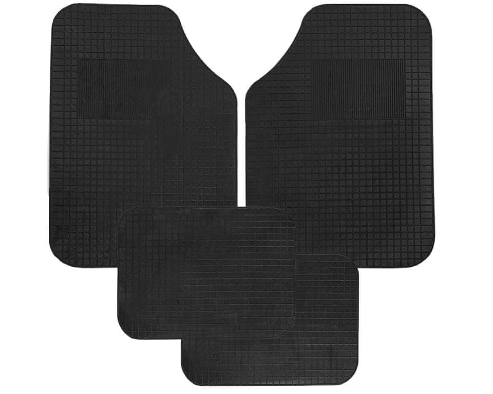 Komplet 4 univerzalnih avto tepihov iz kaljene gume. To je cenejša varianta preciznih tepihov, ki se lahko uporabljajo za skoraj vse tipe avtomobilov. Protizdrsna plast na dnu. Višina roba je 0,5 cm. Celoten opis