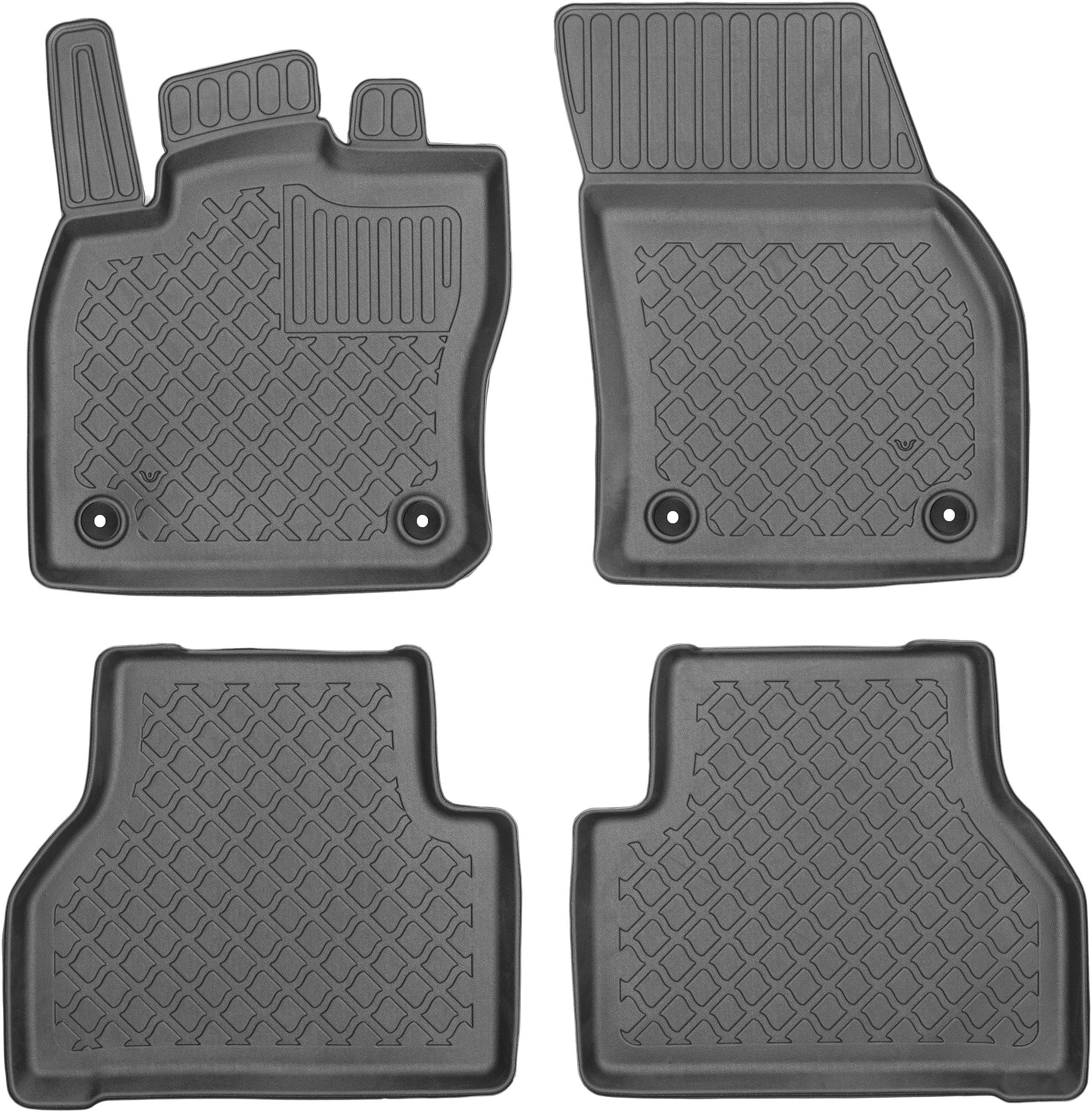 Ponujene talne obloge so bile natančno zasnovane glede na obliko talne obloge, pri čemer so upoštevali ne le znamko/model avtomobila, temveč tudi letnik in različico karoserije, zaradi česar se popolnoma prilegajo. Podloge so izdelane iz najkakovostnejše, trpežne in ojačane plastike, brez snovi, škodljivih za zdravje, kar zagotavlja varno uporabo. Visok zaščitni ovratnik (rob) učinkovito zadržuje vodo in umazanijo ter ščiti originalno avtomobilsko oblazinjenje pred umazanijo. Varna za uporabo, zahvaljujoč praktičnemu in enostavnemu sistemu pritrditve na tla avtomobila. Sistem pritrditve je prilagojen znamki/modelu avtomobila in preprečuje drsenje predpražnika med vožnjo. Mat zaključek in prefinjen vzorec površine zagotavljata, da so predpražniki v vašem avtomobilu estetsko privlačni.