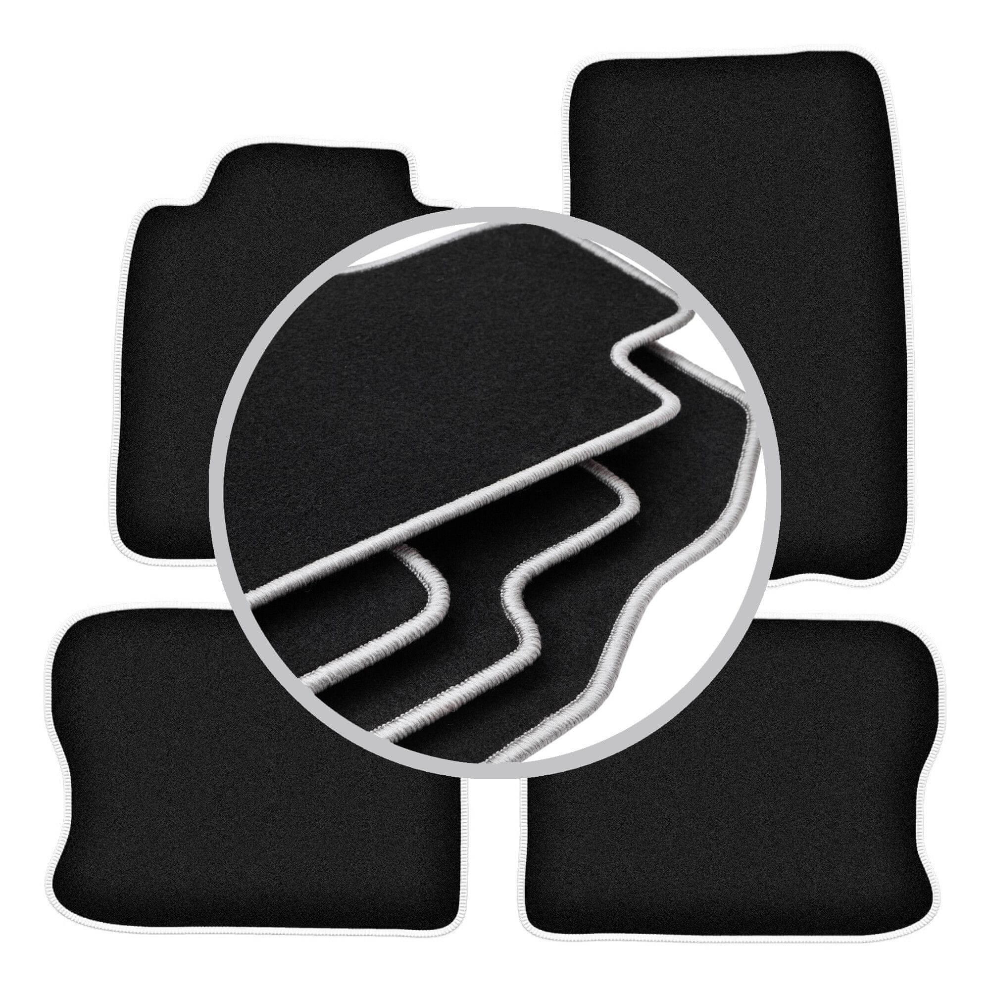 Avtomobilske preproge WLG-CARLUX-SILVER – funkcionalnost in eleganten zaključek s svetlo sivimi šivi! Serija WLG-CARLUX-SILVER je harmonična kombinacija elegance, vzdržljivosti in udobja. Preproge so izdelane iz črnega iglanega vlakna, njihova obroba iz trpežne, svetlo sive polipropilenske preje pa doda notranjosti vozila sodoben poudarek. Zahvaljujoč temu ne pridobite le zaščite za svoja tla, temveč tudi prefinjen videz, ki bo osvežil notranjost vašega avtomobila. Natančno profilirane in opremljene z gumijasto podlogo, preproge med vožnjo ostanejo stabilne, kar zagotavlja udobje in varnost. Če želite svojemu avtomobilu dati eleganten videz in hkrati ohraniti maksimalno praktičnost, bo WLG-CARLUX-SILVER izpolnil vaša pričakovanja.