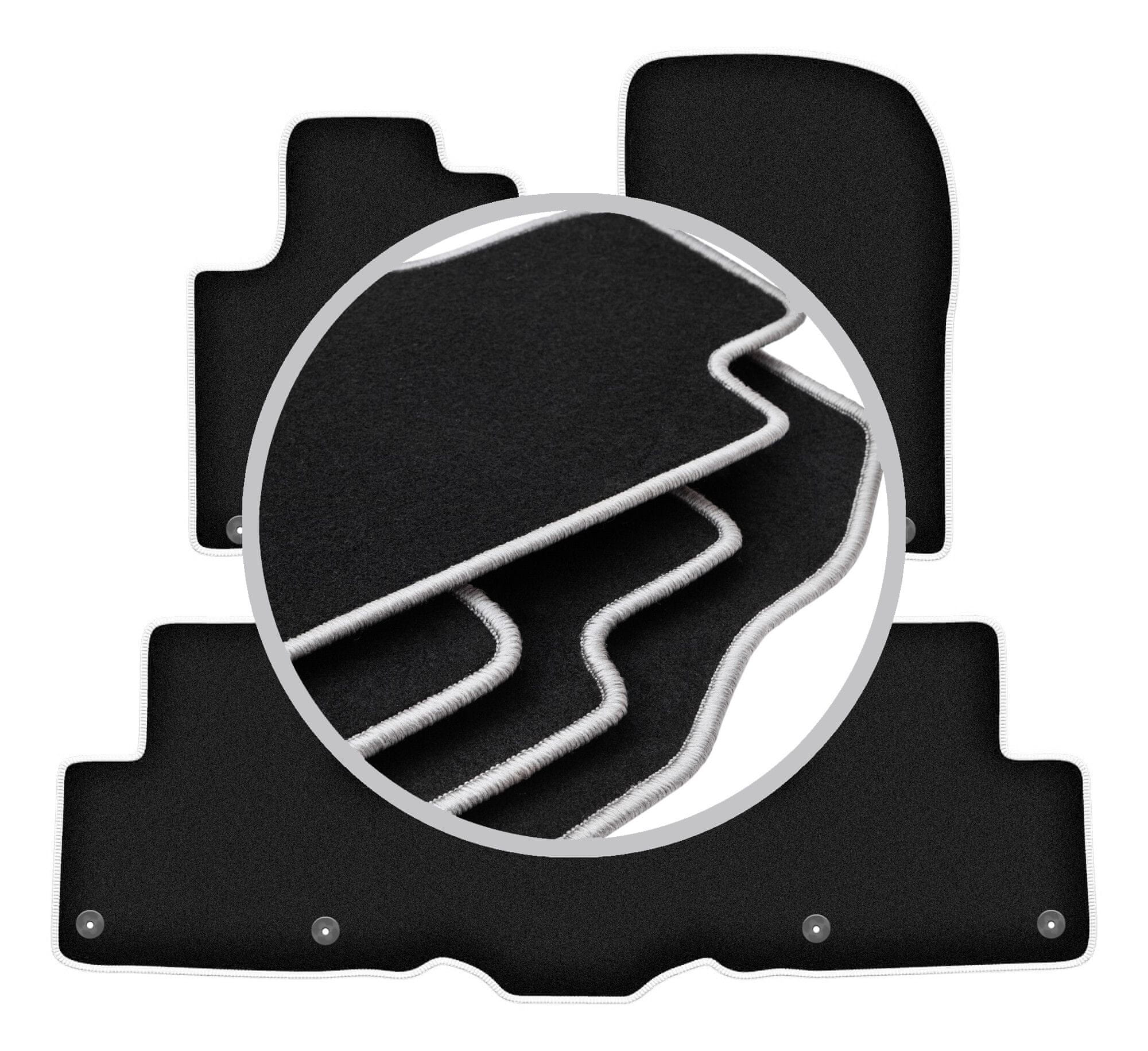 Avtomobilske preproge WLG-CARLUX-SILVER – funkcionalnost in eleganten zaključek s svetlo sivimi šivi! Serija WLG-CARLUX-SILVER je harmonična kombinacija elegance, vzdržljivosti in udobja. Preproge so izdelane iz črnega iglanega vlakna, njihova obroba iz trpežne, svetlo sive polipropilenske preje pa doda notranjosti vozila sodoben poudarek. Zahvaljujoč temu ne pridobite le zaščite za svoja tla, temveč tudi prefinjen videz, ki bo osvežil notranjost vašega avtomobila. Natančno profilirane in opremljene z gumijasto podlogo, preproge med vožnjo ostanejo stabilne, kar zagotavlja udobje in varnost. Če želite svojemu avtomobilu dati eleganten videz in hkrati ohraniti maksimalno praktičnost, bo WLG-CARLUX-SILVER izpolnil vaša pričakovanja.