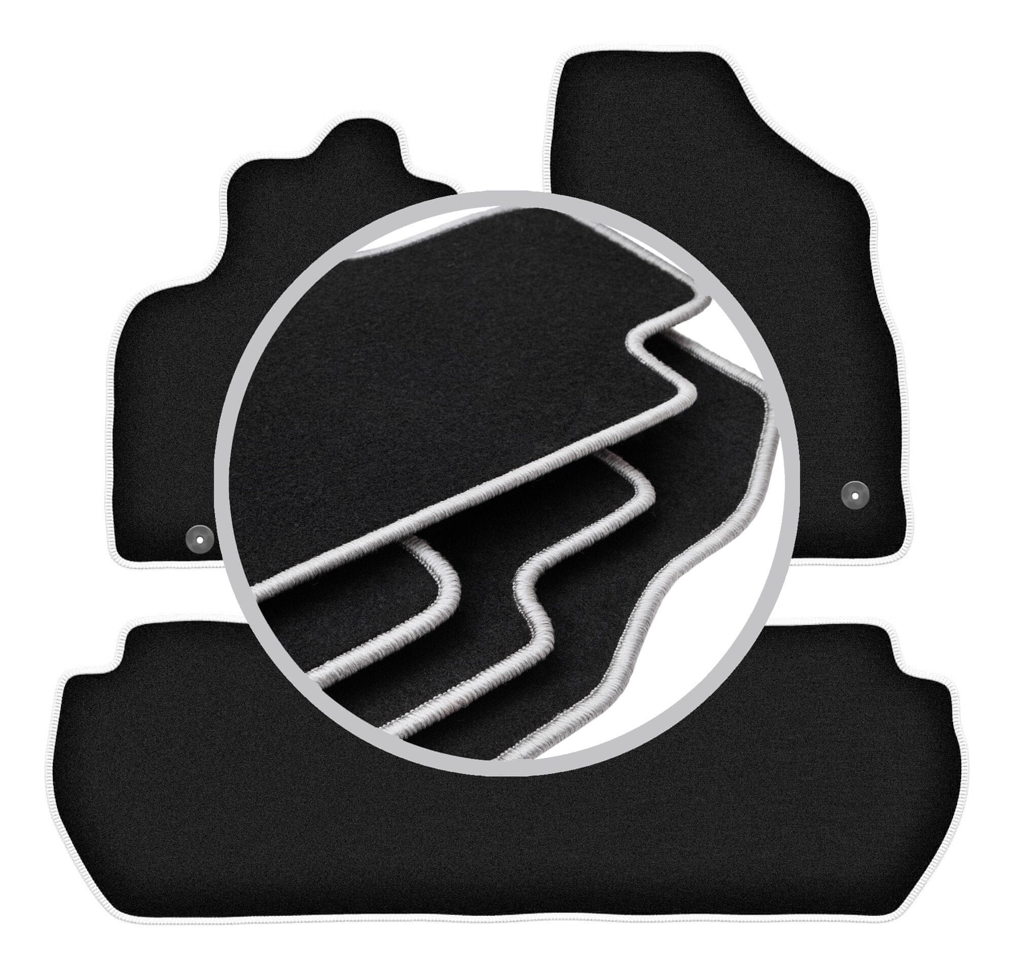 Avtomobilske preproge WLG-CARLUX-SILVER – funkcionalnost in eleganten zaključek s svetlo sivimi šivi! Serija WLG-CARLUX-SILVER je harmonična kombinacija elegance, vzdržljivosti in udobja. Preproge so izdelane iz črnega iglanega vlakna, njihova obroba iz trpežne, svetlo sive polipropilenske preje pa doda notranjosti vozila sodoben poudarek. Zahvaljujoč temu ne pridobite le zaščite za svoja tla, temveč tudi prefinjen videz, ki bo osvežil notranjost vašega avtomobila. Natančno profilirane in opremljene z gumijasto podlogo, preproge med vožnjo ostanejo stabilne, kar zagotavlja udobje in varnost. Če želite svojemu avtomobilu dati eleganten videz in hkrati ohraniti maksimalno praktičnost, bo WLG-CARLUX-SILVER izpolnil vaša pričakovanja.