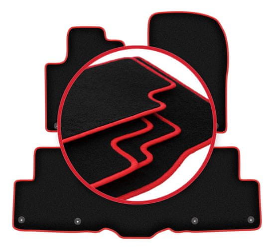 Avtomobilske preproge WLG-CARLUX-RED – funkcionalnost in eleganten zaključek z rdečimi šivi! Predpražniki serije WLG-CARLUX-RED so kombinacija elegantne črne barve in značilnih rdečih šivov, ki dajejo notranjosti avtomobila edinstven značaj. Izdelane so iz trpežne polipropilenske podloge, ki odlično ščitijo tla pred umazanijo in zaradi premišljene zasnove ostanejo stabilne med vožnjo. Natančno prileganje obliki tal in gumijasta podloga preprečujeta drsenje podlog, hkrati pa ohranjata urejen videz. Če iščete izdelek, ki bo poudaril notranjost vašega avtomobila, hkrati pa zagotavljal zaščito in udobje, bo WLG-CARLUX-RED popolna izbira.