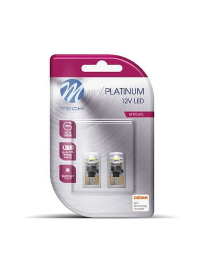 M-tech/Osram Platinum je linija inovativnih LED žarnic, zasnovanih izključno na Osramovih polprevodniških komponentah (Optosemiconductors Osram LED) in drugih komponentah visoke kakovosti. Izdelek je v celoti zasnovala skupina inženirjev R&D. Tehnologija za uravnavanje delovne temperaturesame diode je tista, ki loči M-Tech/Osram Platinum Retrofit linijo od vseh drugih izdelkov nižjega in srednjega razreda. Ko je dosežena mejna temperatura, se poraba moči samodejno znižuje do ravni pravilnega ravnovesja. Zahvaljujoč vgrajenim diodam Osram v kombinaciji z najnovejšo tehnologijo M-Tech so te žarnice najkakovostnejše na svetu. Najdaljša življenjska doba in najboljša svetilnost. Zaradi naprednih rešitev, proizvajalec nudi kar 3 letno garancijo na vse izdelke iz linije PLATINUM.