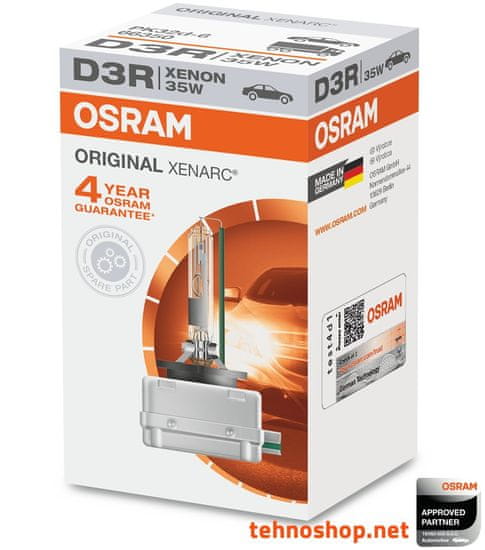 XENARC ORIGINAL D3R 66350 žarnice navdušujejo s široko paleto izdelkov in zanesljivo kakovostjo originala. Uspešno se uporablja v milijonih novih avtomobilov uglednih proizvajalcev, bodisi kot standardna začetna oprema ali kot originalni rezervni deli. Z barvno temperaturo do 4.500K je njihova svetloba bližja naravni svetlobi kot običajna halogenska žarnica s 3.200K – in je zato prijetnejša za oči. Zahvaljujoč impresivni svetilnosti, žarnice zagotavljajo boljšo vidljivost na cesti. Osram žarnice kot originalni rezervni deli vašega vozila prepričajo s svojo dolgo življenjsko dobo. OSRAM zagotavlja 4-letno garancijo za žarnice XENARC ORIGINAL D3R 66350.