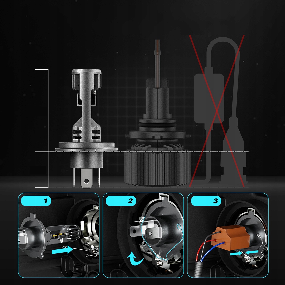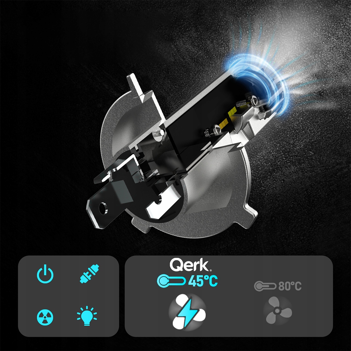 - Zahvaljujoč novi inovativni zasnovi je ventilator nameščen na vrhu naknadne vgradnje, hkrati pa ohranja podobne dimenzije kot klasična žarnica H4