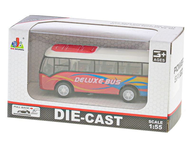 Kovinski avtobus 9 cm – mešanica barv (rumena, rdeča, zelena, modra, bela) Celoten opis