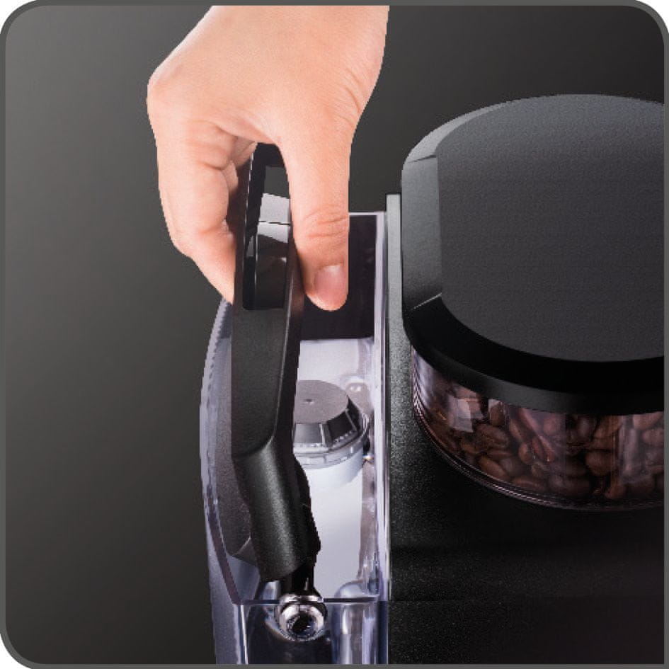 Kovinski stožčasti mlin z brusnimi kamni, zasnovan za doseganje rezultatov na profesionalni ravni. Ponuja izbiro med tremi stopnjami grobosti mletja za pripravo izjemnega ristretta, espressa in kave.