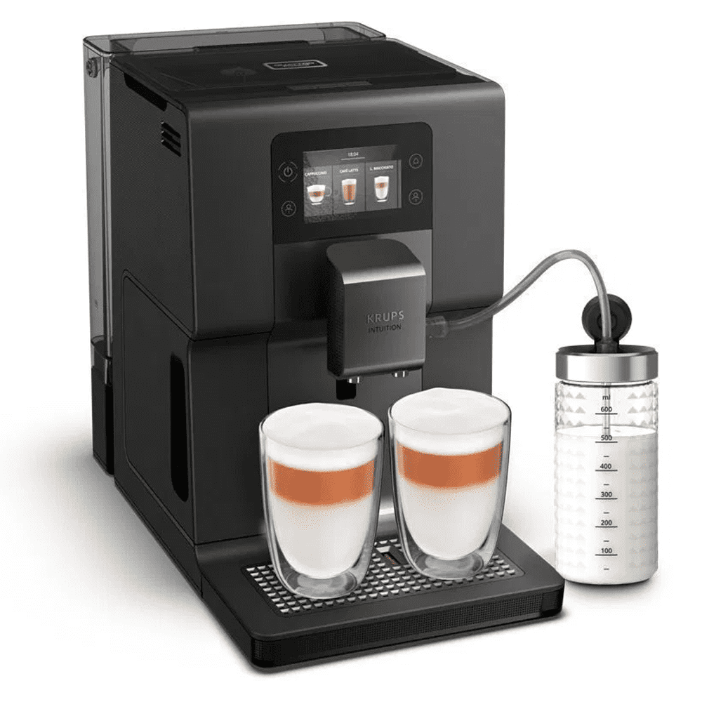 Krups Intuition Preference+ je eleganten, prefinjen in stilsko dovršen kavni aparat, ustvarjen za najlepše trenutke dneva – trenutke ob kavi. Iz širokega nabora receptov vam pripravi točno tisto, kar si zaželite – zjutraj cappuccino, po kosilu espresso, ob sladici latte. Vgrajeni mlinček z 5 stopnjami grobosti mletja zrn zagotavlja idealno pripravo. Kavni aparat si lahko zapomni do 8 individualno nastavljenih priljubljenih napitkov. Med pripravo vas vodi barvna osvetlitev, ki intuitivno prikazuje trenutno stanje. Barve si lahko prilagodite po svojih željah, rdeča pa jasno opozori na potrebo po vzdrževanju. Izbor napitkov in vse nastavitve potekajo preko barvnega zaslona na dotik.