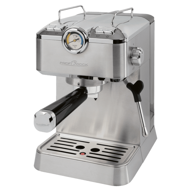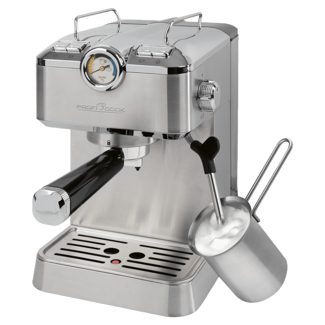 Profesionalni espresso aparat ProfiCook ES-KA 1267 – popolna kava kot od bariste Ta profesionalni espresso aparat je idealna izbira za pripravo vaših najljubših kavnih specialitet, kot so espresso, ristretto, latte macchiato, caffè latte, cappuccino, crema in caffè americano. Zahvaljujoč originalni italijanski črpalki za espresso in visokemu tlaku do 20 barov lahko uživate v bogatem okusu in kremasti peni, ki ju pričakujete le v kavarni. Kavni aparat je opremljen s funkcijo samodejnega predpriprave pare in analognim prikazovalnikom temperature, ki zagotavljata popoln nadzor pri pripravi vaših napitkov. Dva visokokakovostna lita aluminijasta filtra omogočata uporabo mlete kave in kapsul, ki so združljive s sistemom Nespresso. Vrtljiva parna šoba iz nerjavnega jekla s funkcijo stepanja mleka je idealna za ustvarjanje fine mlečne pene za kapučino ali latte. Zahvaljujoč individualno programirani količini kave lahko velikost napitka preprosto prilagodite svojim željam. Kavni aparat ima funkcijo vroče vode, ki jo lahko uporabite na primer za pripravo čaja ali caffè americana. Oblika kavnega aparata združuje elemente iz nerjavečega jekla s praktičnim dizajnom. Prozoren 1,5-litrski rezervoar za vodo je enostavno odstranljiv za priročno polnjenje in čiščenje. Pladenj za kapljanje iz nerjavečega jekla z odstranljivo mrežico omogoča enostavno vzdrževanje, gumijaste nogice pa zagotavljajo stabilnost na delovni površini. Nadzorni gumbi z osvetljenim videzom iz nerjavnega jekla dodajajo sodoben in eleganten videz.