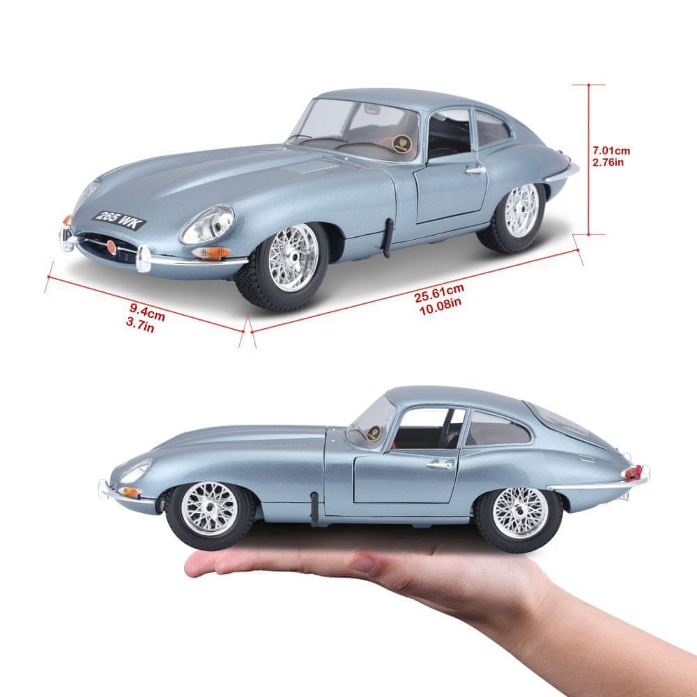 Bburago 1:18 Jaguar E Coupe srebrno modra kovinska barva Celoten opis