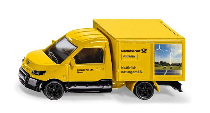 SIKU Super – Rumeni kombi, električni transporter za dostavo paketov. Motor je zelo tih. Električni transporter je zasnovan posebej za dostavo paketov. Transporter je kompakten, enostaven za manevriranje in okreten v mestnem prometu. Vgreznjeni žarometi poudarjajo značilno obliko. Podrobno izdelana voznikova kabina in šasija v merilu 1:50 sta izdelani iz kovine. Zadnja plastična vrata je mogoče odpreti. Oblikovana platišča z gumijastimi pnevmatikami. Vlečna naprava. Dimenzije: 99 × 39 × 39 mm. Dimenzije paketa: 13,9 × 5,1 × 8,7 cm. 3+