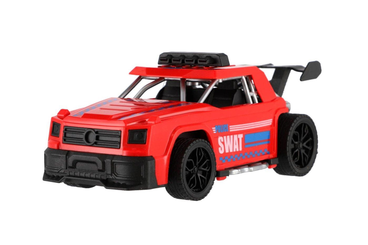 Z našim plastičnim dirkalnikom z vztrajnikom se podajte na dirkališče! Preprosto ga potegnite nazaj in spustite ter opazujte, kako se požene naprej. Velikost avtomobila: 16 cm Primerno za otroke, stare 3 leta in več