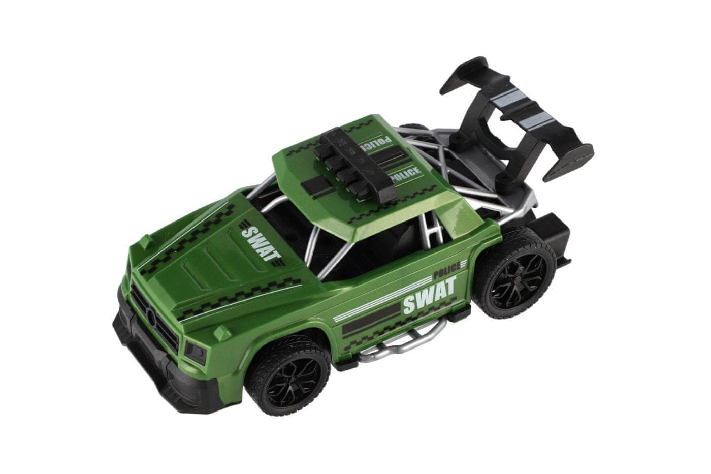 Odpravite se na dirkališče z našim plastičnim dirkalnikom z vztrajnikom! Celoten opis