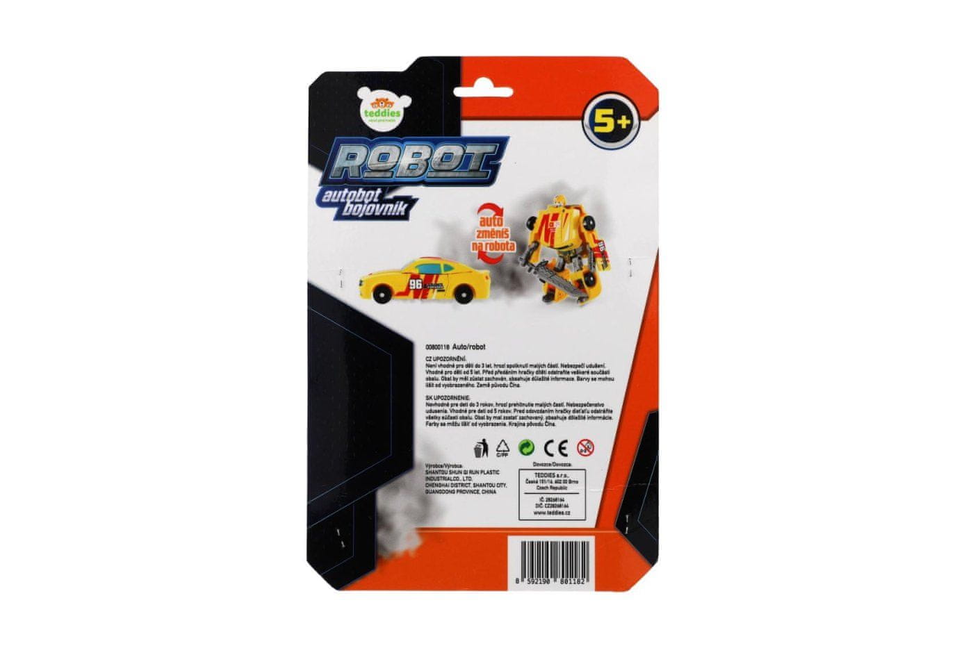 Teddies Transformer avto/robot plastika 14cm rumena na kartici