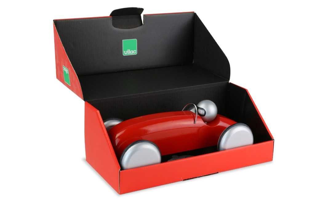 Rdeč dirkalni avtomobil iz lakiranega lesa. Primeren je tako za igranje kot za dekoracijo otroških ali odraslih sob. Izdelano v Franciji. Glavne značilnosti: izdelano v Franciji