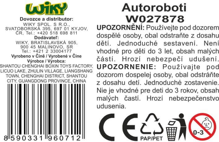 Autobot 2 kosa. 2 različici razloženega avtobota – modra, bela. Celoten opis