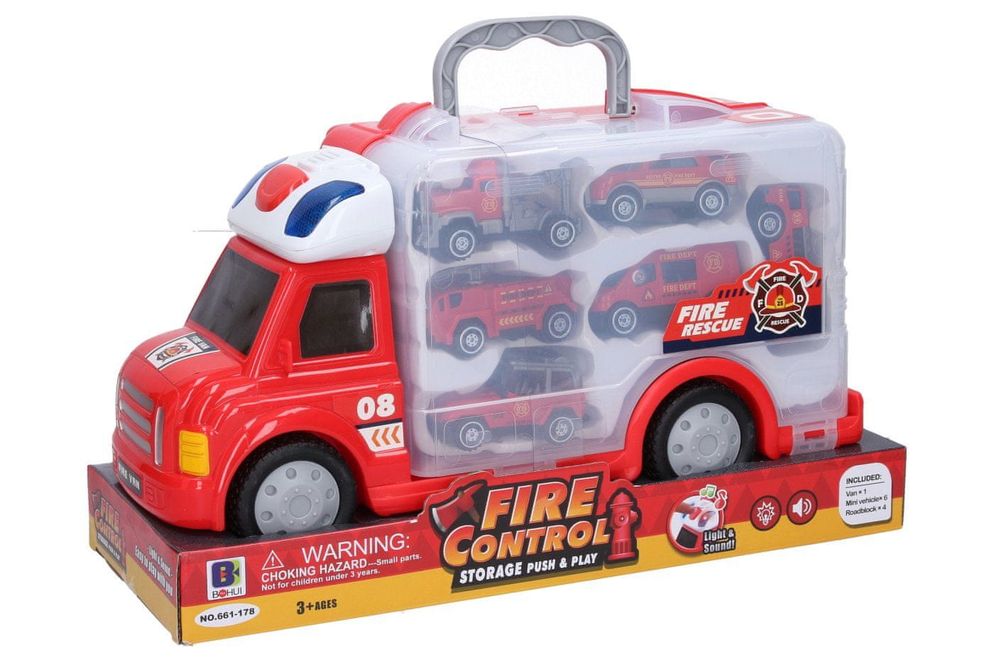 Gasilski avto z učinki in 6 majhnimi avtomobili 34 cm