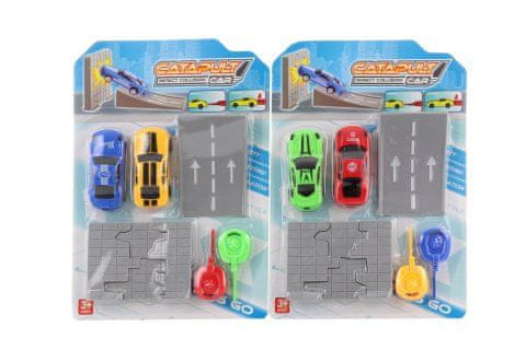 Plastični set vsebuje 2 avtomobila, ploščad, steno za razbijanje in 2 orodji za streljanje avtomobilov. Pakirano na kartici. Dimenzije paketa so približno 22×32×2,5 cm. Velikost avtomobila 9 cm. Starost 3+
