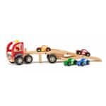 Praktični traktor s prikolico za majhne voznike iz Woodyja. Traktor, prikolica in avtomobili soizdelani iz trdega masivnega lesa. Dvonadstropno ploščad za avtomobile je mogoče zložiti, tako da lahko avtomobili vozijo po rampi in z nje.Traktor in prikolico je mogoče ločiti.