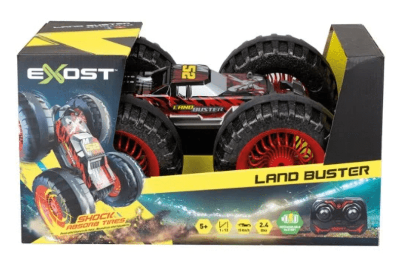 Silverlit Land Buster avtomobil na daljinsko upravljanje. Opremljen je s pnevmatikami EPP in obročem vzmeti proti udarcem, zato lahko izvaja obračanje in navpične premike z največjo absorpcijo udarcev.