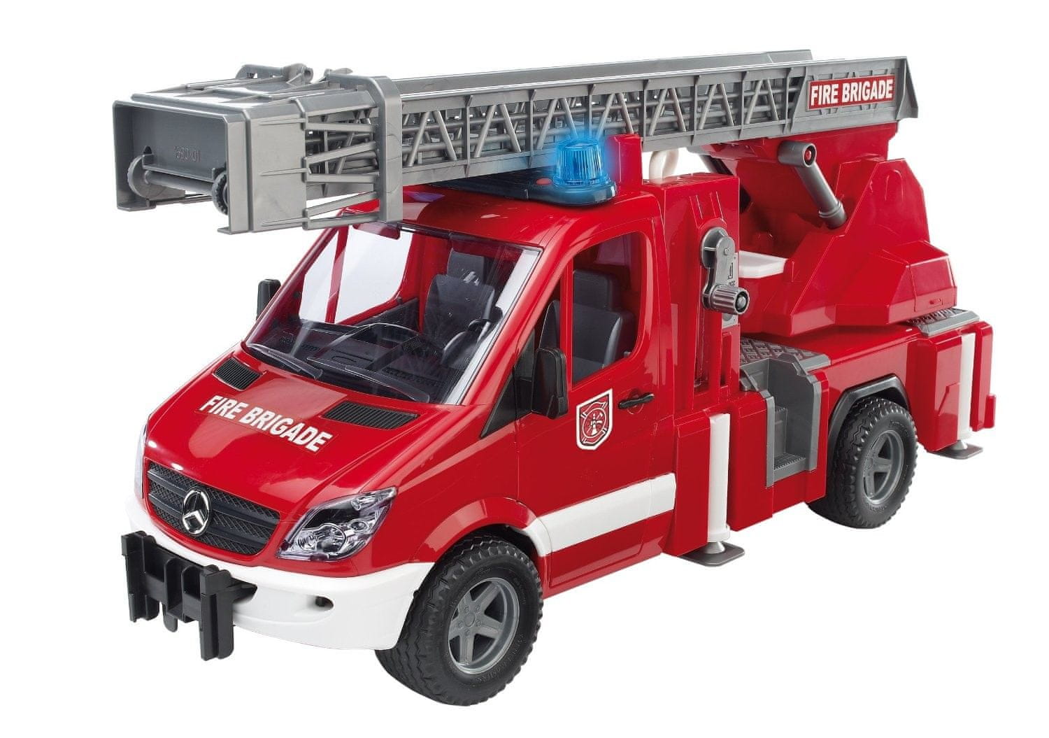 Bruder gasilski kamion Mercedes Benz bo poskrbel za vznemirljivo igro, saj ponuja veliko funkcij. Ponaša se z raztegljivo lestvijo, ki se lahko zaklene v željeno pozicijo, gasiilno cevjo, utripajočimi se lučkami, z zvokom ter mnogimi drugimi dodatki.