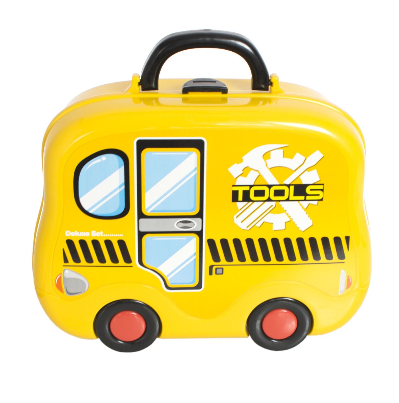 DELOVNIŠKI SET Z DODATKI V KADRETU Delavniški set z dodatki v kovčku v obliki avtobusa. Celoten opis