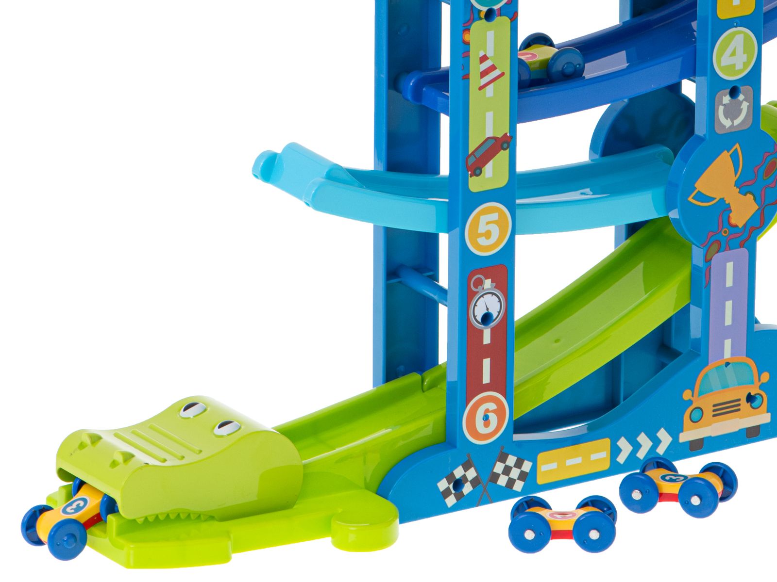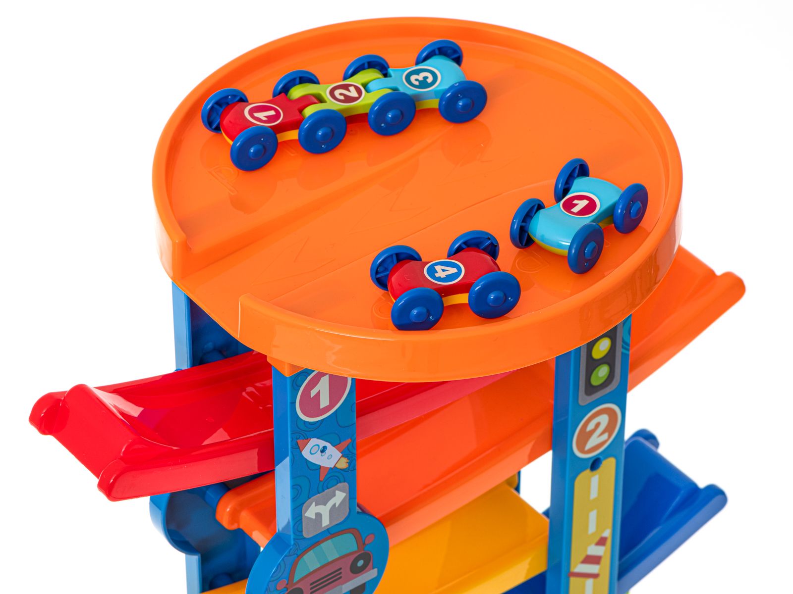 Čudovito barvit avtomobilski tobogan bo navdušil vsakega malega navdušenca nad štirikolesniki. Organizirajte tekmovanje in preverite, kateri avto je hitrejši! Sprejmite izziv in uničite avtomobil. Na poti vas čakajo razburljivi skoki iz enega nadstropja v drugega. Opazujte, kako natančno se avtomobil prebija skozi vsako nadstropje. Prepustite se razburljivi pustolovščini. Progo sestavlja 7 različnih barvnih stopenj. Odlična igrača, ki bo poskrbela za veliko zabave in veselja. Proga ni le odlična zabava, temveč tudi oblika učenja in podpiranja pravilnega razvoja vašega otroka. Igra s toboganom spodbuja logično razmišljanje in podpira razvoj otrokovih ročnih spretnosti. Poleg tega se s skupnim igranjem na tekmovanju naučite sodelovanja, učinkovite komunikacije ter tega, kako izgubiti in zmagati. Odlično darilo za malega ljubitelja avtomobilizma. Zagotovljena je odlična zabava! Žive, nasičene barve in pozornost do podrobnosti bodo navdušile tudi najzahtevnejše strokovnjake za ekstremno vožnjo. Vsebina kompleta: 5 kratkih vagončkov 1× dolg vagonček Dimenzije: Steza: 7 cm x 31 cm x 43 cm Kratek vagonček: 4,5 cm x 2,8 cm x 1,8 cm Dolg vagonček: 9.5×m x 2.8cm x 1.8cm Embalaža: 43cm x 31cm x 12.5cm