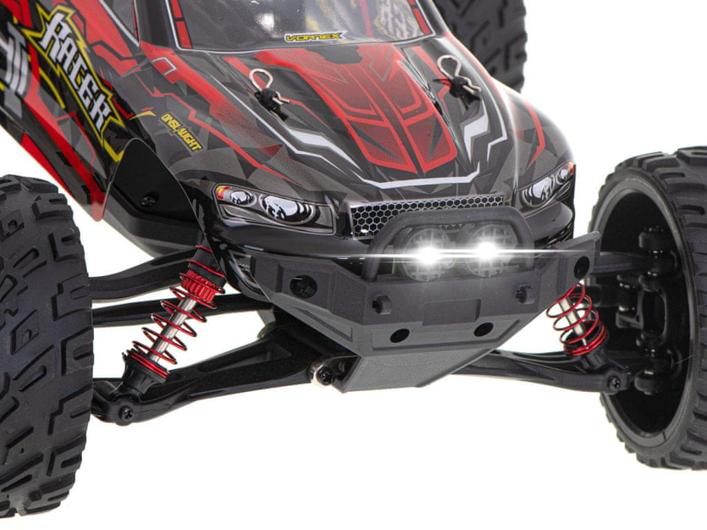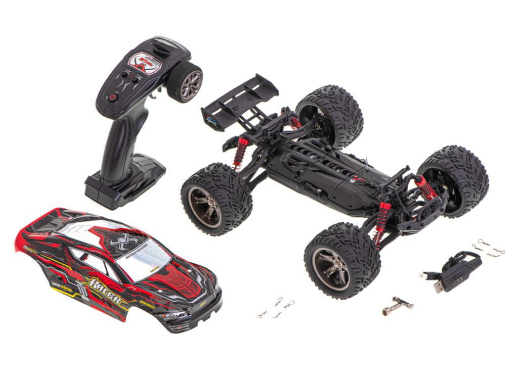 RC MONSTER TRUCK 1:12 2.4GHz 9116 RED Fantastična pustolovščina in vožnja z ultimativnim Monster Truckom 911 6 vsekakor prinaša! Gromozanski pospešek! Pripnite se in se trdno držite – vozilo doseže hitrost do 36 km/h. Oglejte si ga in se prepričajte, kaj vse zmore to edinstveno vozilo. Dvokolesni pogon in velike gumijaste pnevmatike zagotavljajo odličen oprijem in stabilnost med vožnjo. Pravi osvajalec terena, ki se ne boji nobene površine. Odlično se premika po betonu, pesku, kamenju ali travi. Zaradi kovinske ojačitve nihajne gredi, pogonskih oblog, sklepov in kolesnih ležajev je vozilo nepremagljivo. Poslastica za ljubitelje hitrih terenskih vozil. Intuitivno upravljanje! Upravljanje vozila je zelo preprosto – uporabite krmilnik v obliki pištole. Oddajnik 2,4 GHz zagotavlja boljši domet in hitrejši odziv. Poleg tega lahko hkrati upravljate več modelov brez motenj. Avto je resnično impresiven! Kakovost izdelave in sodoben dizajn avtomobila bosta navdušila tudi najbolj zahtevne. Vsebina kompleta: daljinski upravljalnik za avto akumulatorska baterija polnilni kabel USB Tehnične specifikacije: Napajanje avtomobila: 1500 mAh7,4V akumulatorska baterija (vključena) Napajanje daljinskega upravljalnika: 3× AA 1,5V baterije (niso priložene) Hitrost: 36 km/h Čas vožnje: približno 20 min Čas polnjenja: približno 2,5 h Doseg: 60 m Oddajnik: 2,4 GHz Merilo: 1:12 Pogon: 2WD Material: plastika/kovina Starost: 14+ Premer kolesa: približno 7,5 cm Dimenzije avtomobila: 34 cm x 28 cm x 10 cm Dimenzije paketa: 41 cm x 28,5 cm x 14,5 cm