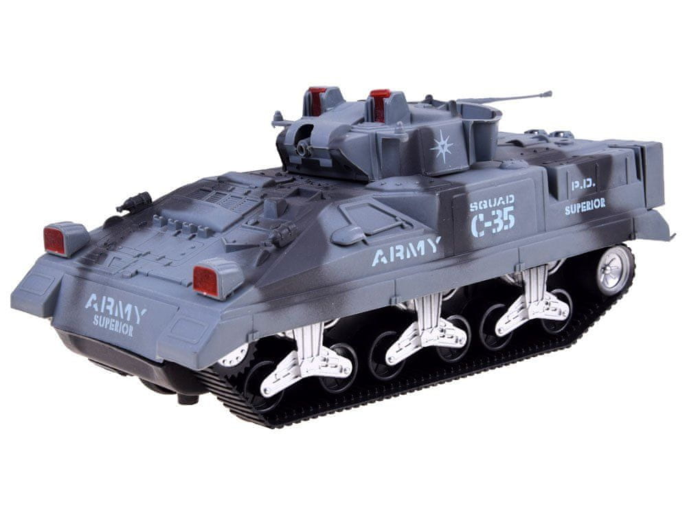 Ta velik komplet bo omogočil več ur fantastične zabave, polne epskih bitk in nepozabnih pustolovščinód. Vsi elementi so izdelani iz plastike. Igrača je izdelana s pozornostjo do vsake podrobnostiód. Tank ima premično vežico s cevjo, tudi top ima premični top, vojaki imajo premične roke, noge.