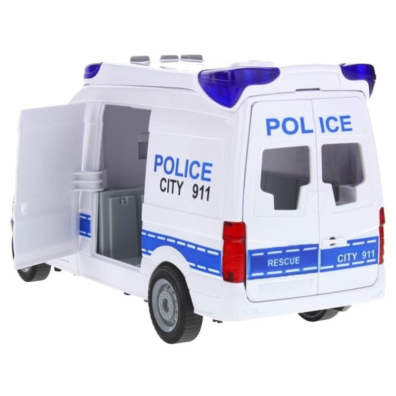 Policijsko vozilo s frikcijskim pogonom, namenjeno lovljenju, bo fantom prineslo veliko zabave. Vozilo ima odpirajoča se vrata v kabino, odpirajoča se bočna vrata in odpirajoč prtljažnik, kar olajša prevoz osumljencev. Na strehi je nameščen zvočni in svetlobni modul, ki naredi vsako igro bolj privlačno. Samo vklopite sireno in pojdite v akcijo.