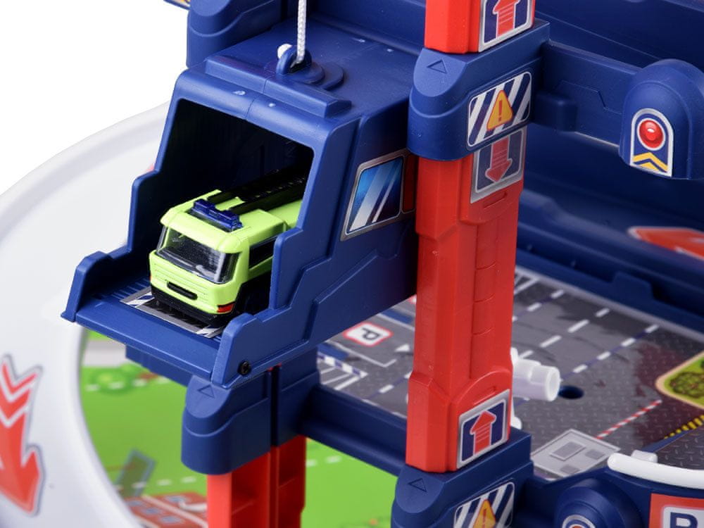 Senzacionalno večnadstropno parkirišče s črpalko, dvigalom, dvigom, avtomehanično delavnico, pristajalno ploščadjo za helikopterje. Parkirišče je primerno za „resorcery“.S pomočjo dvigala lahko avtomobili vozijo v različna nadstropja parkirišča. Če vam zmanjka bencina, ga lahko enostavno natočite na bencinski črpalki. Ko želite popraviti svoje vozilo, uporabite dvigalko za popravilo vzmetenja ali zamenjavo pnevmatike. Komplet vsebuje številne druge elemente, ki igro zelo popestrijo, na primer prometne znake, stožce. Trgovina Jokomisiada ponuja širok izbor stez, avtomobilčkov, avtomobilskih stez, garažnih igrač.