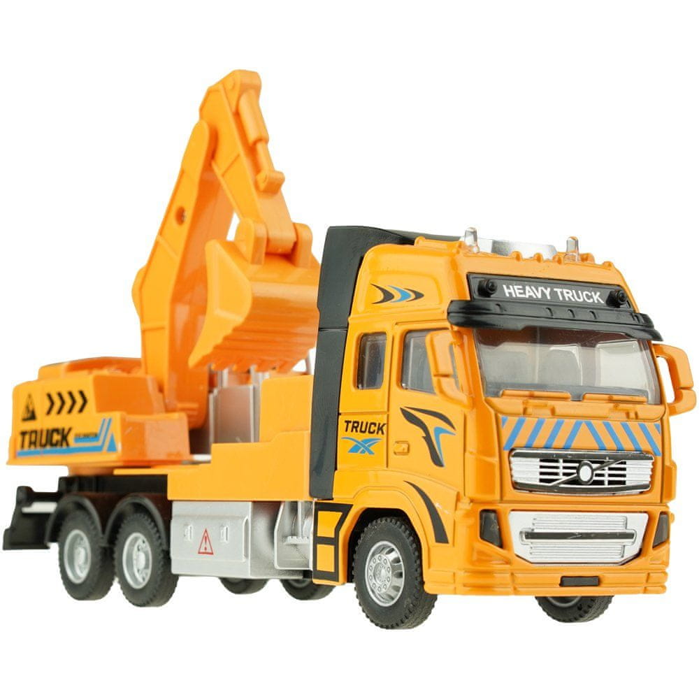Ta model tovornjaka in prikolice je sestavljen iz kovinskih delov (prikolica tovornjaka) in plastičnih delov (vse ostalo). Gradbeni stroj na prikolici je mogoče zavrteti za 360 stopinj, roko in žlico bagra pa dvigniti.