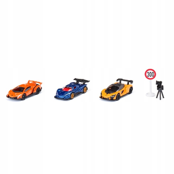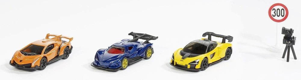 Vsa tri vozila so trenutno med najhitrejšimi, najmočnejšimi, najdražjimi in najbolj nenavadnimi vozili na svetu. Mlade policiste bo razveselilo tudi dejstvo, da komplet vključuje znak za omejitev hitrosti in kamero za merjenje hitrosti, saj je eno jasno: s toliko moči je mogoče hitro preseči celo omejitev 300 km/h!