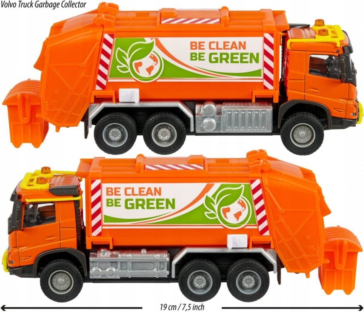 Ta oranžen smetarski tovornjak se zaradi gumijastih pnevmatik s tekalno plastjo in žarometov prebija skozi dež, zmrzal in žgočo vročino mesta. Realistični zvoki smetarskega tovornjaka zagotavljajo vznemirljivo igro za malčke.
