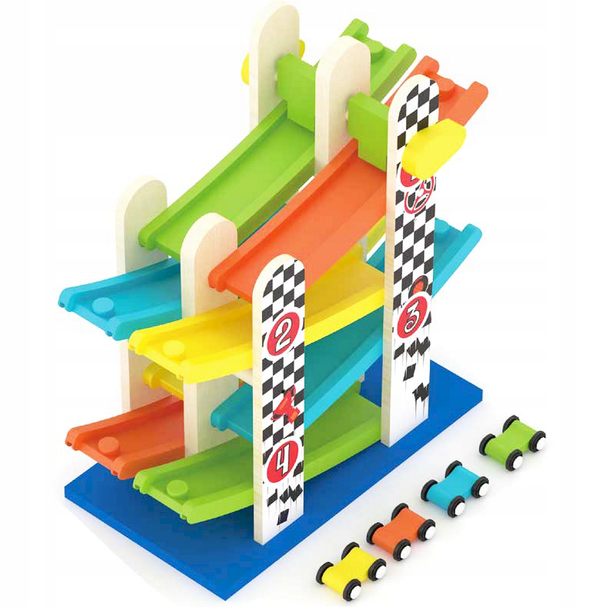 SMILY PLAY Leseni dvojni tobogan z lesenimi avtomobilčki Celoten opis