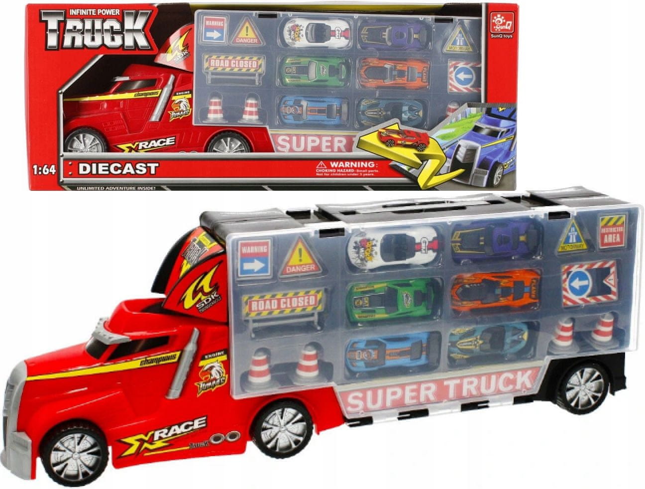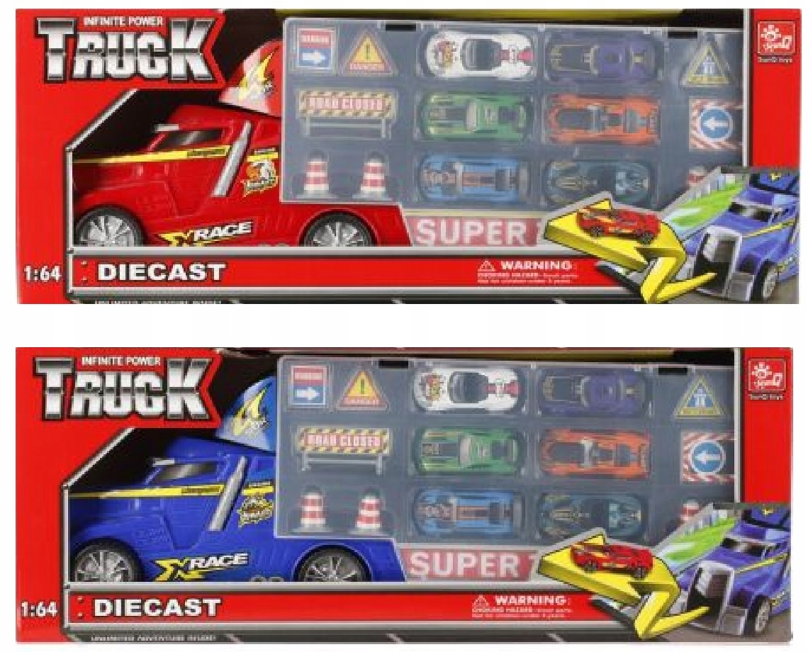 1 avtomobilček v merilu 16, vlečni tovornjak je na voljo v dveh barvnih različicah: modri in rdeči.