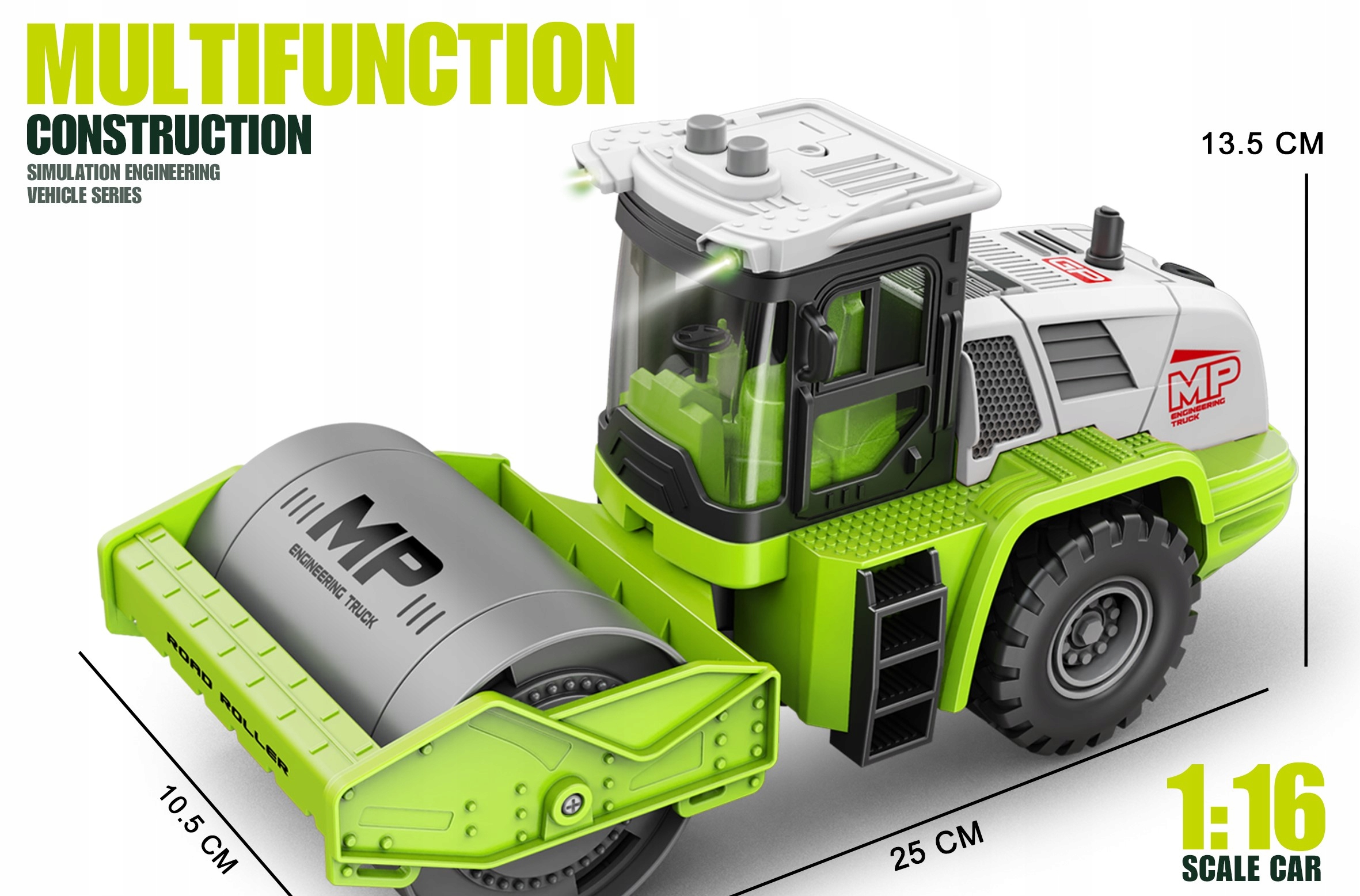 ? Zeleni valjar v akciji! Ta interaktivna gradbena igrača bo najmlajšim zagotovila realistično izkušnjo zahvaljujoč edinstvenim zvočnim in svetlobnim učinkom. Valj omogoča igranje vlog ter razvija kognitivne sposobnosti in ustvarjalnost skozi gradbene scenarije in naloge, povezane z upravljanjem strojev.