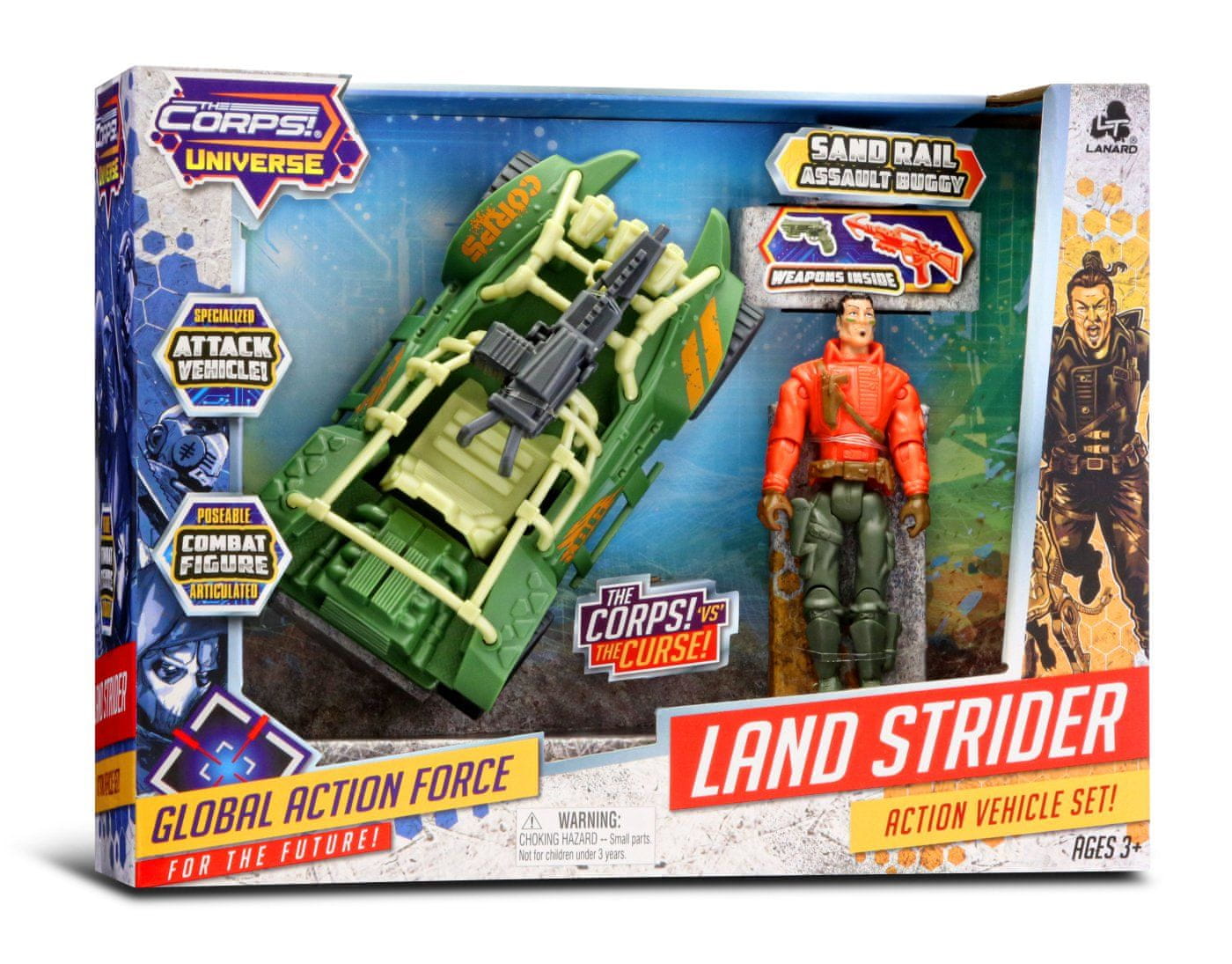 Vojak korpusa z vojaško opremo. Velikost vozila 14 cm, velikost vojaka 10 cm. 2 različici – štirikolesnik, goseničar.