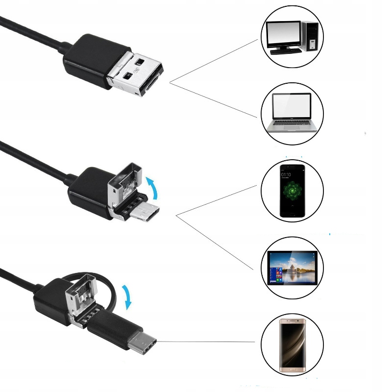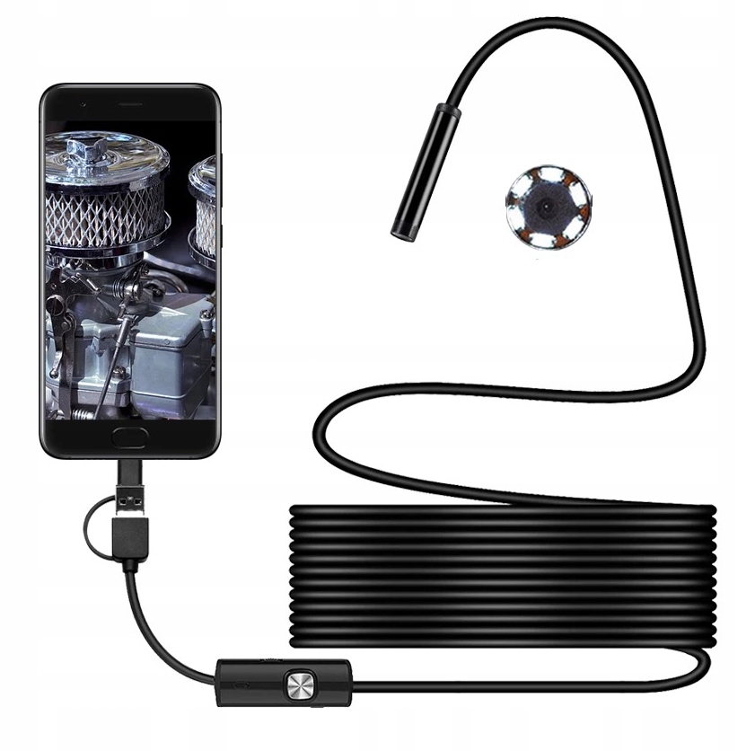 Vodoodporna kamera s stopnjo zaščite IP67, ki jo lahko povežete z računalnikom ali telefonom/tablico Android, če pa imate adapter (micro-lightning ali Type-C-lightning), jo lahko povežete tudi s telefonom/tablico iOS. S kamero lahko dosežete mesta, ki jih nobena druga kamera ne bi mogla doseči.