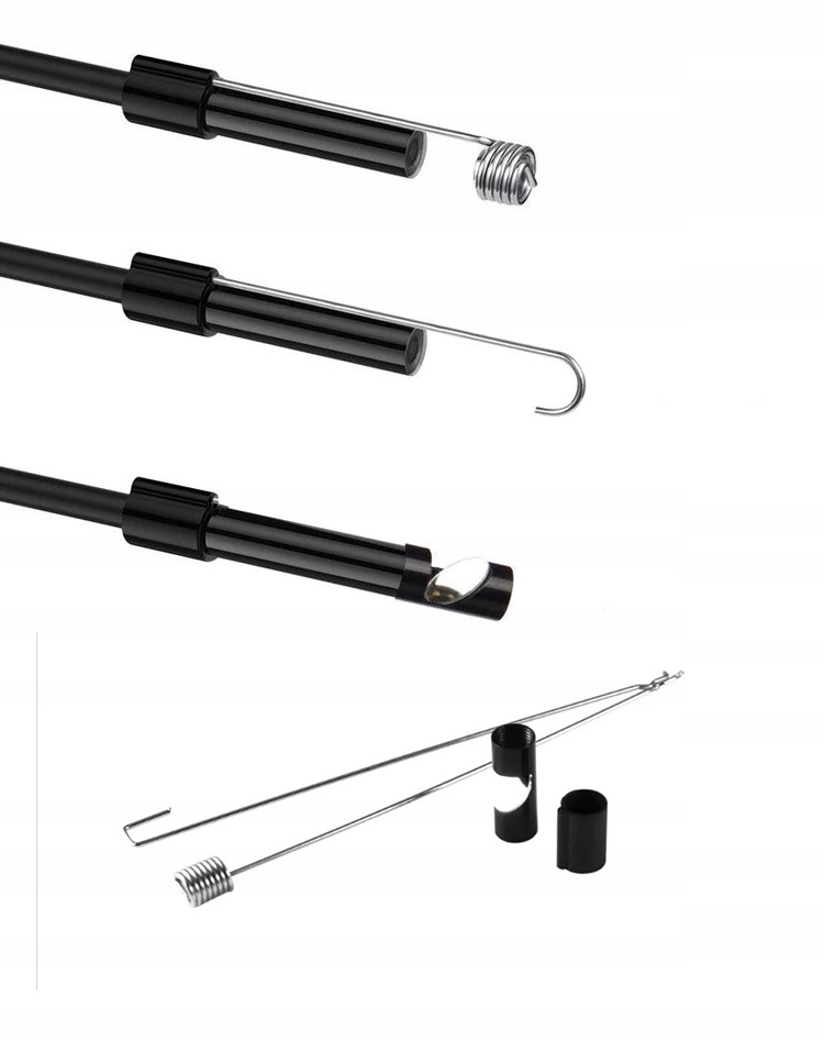 Kamera je opremljena z dodatnimi nastavki – kavljem, magnetom in kotnim teleskopom – tako da lahko preprosto poiščete izgubljene predmete ali pogledate na še bolj nedostopna mesta.