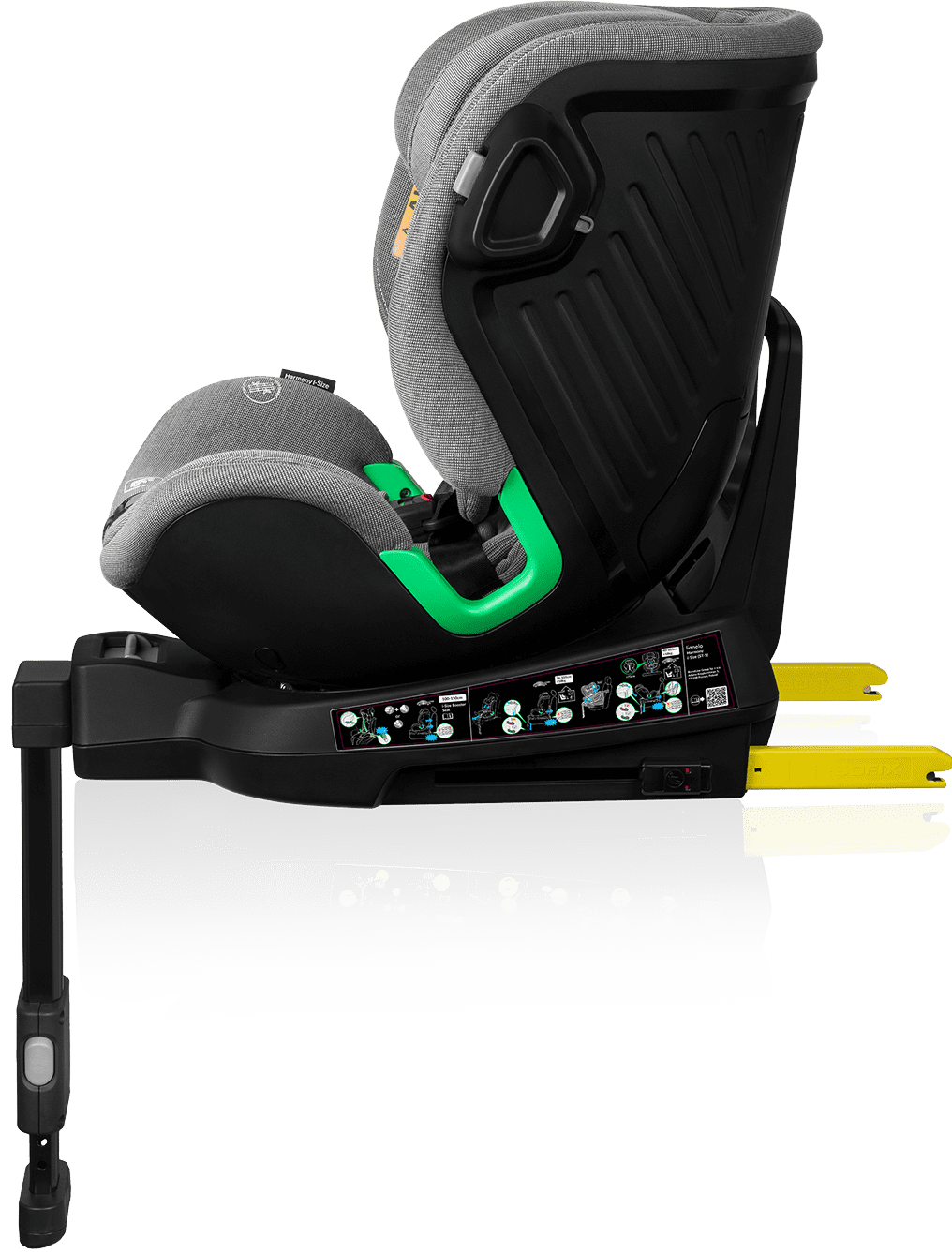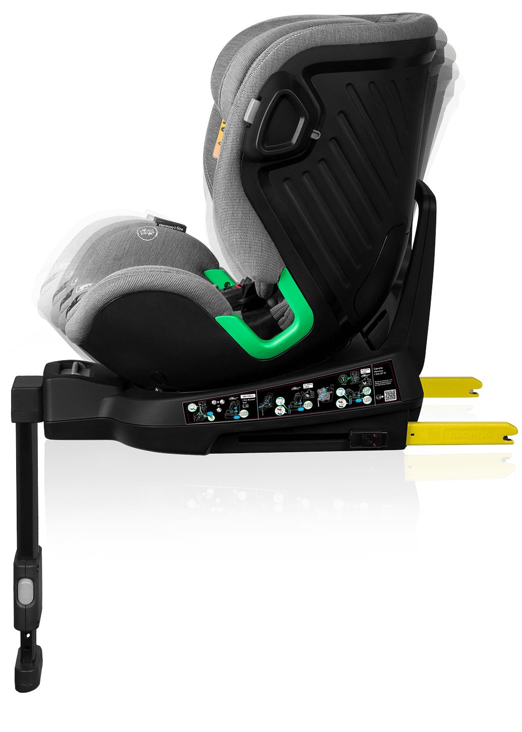 Sedež ponuja 5-stopenjsko nastavitev naklona v obeh smereh vožnje, kar preprečuje povešanje glave med spanjem. Inovativni prilagodljivi protirotacijski okvir pa zagotavlja boljše prileganje sedežu avtomobila in nudi več prostora za noge pri vzvratni vožnji.