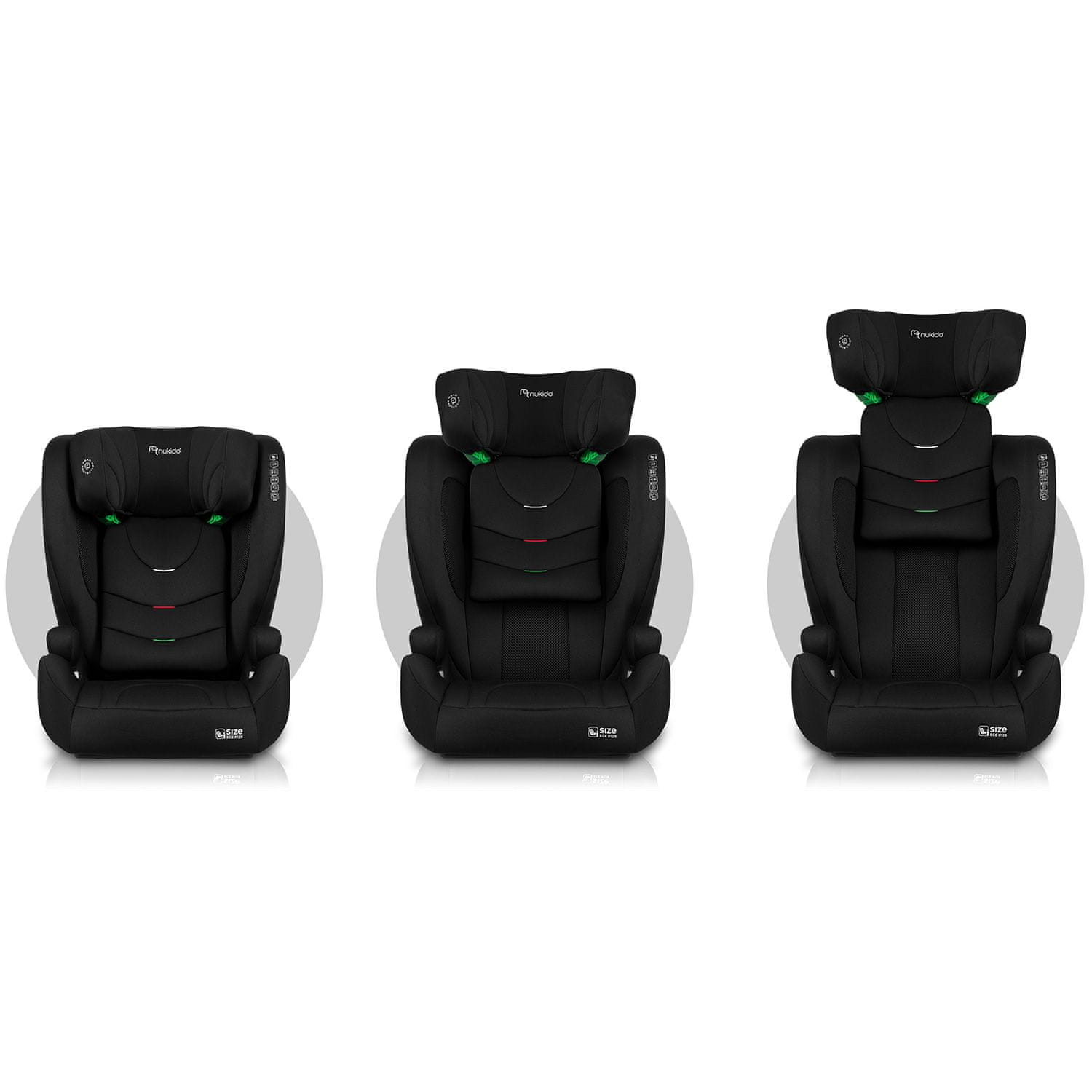2-položajna nastavitev kota naklona, namestitev ISOFIX, snemljiva in pralna prevleka, izpolnjuje evropske varnostne standarde ECE R129 – odobritev i-Size, primerno za otroke visoke 100–150 cm (kar ustreza starosti 4–12 let), 4-točkovne vzdržljive pritrdilne točke za varnostni pas, zahvaljujoč materialom s stranskim pufrom, ojačana zaščita pred udarci, 12-položajna nastavitev vzglavnika – sedež raste z vašim otrokom.