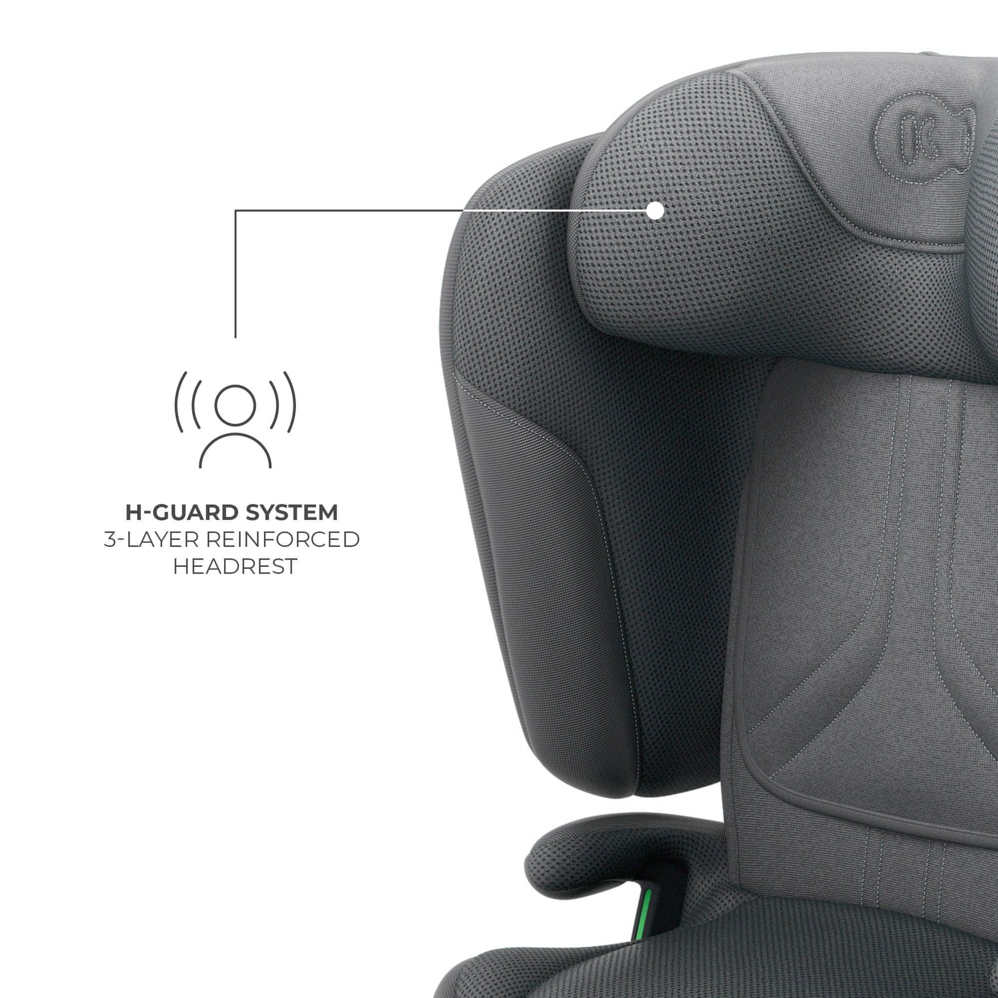 Za izboljšano varnost poskrbita ojačan vzglavnik s sistemom H-GUARD in napredna stranska zaščita SPS+, medtem ko sistem ISOFIX zagotavlja stabilno in zanesljivo namestitev v vozilo. Potovalno udobje na daljših poteh dodatno povečujeta zračna prevleka s tehnologijo AIR FLOW ter ergonomsko oblikovani nasloni za roke.