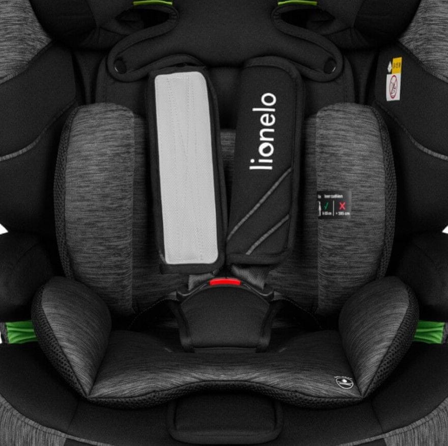 Otroški avtosedež Lionelo Levi one i-size, 76–150 cm, z vstavkom za najmanjše otroke bo poskrbel za varen prevoz otroka v avtomobilu. Avtosedež ustreza standardu i-Size, ima vzglavnik nastavljiv v 10 položajev in se namesti z varnostnimi pasovi.