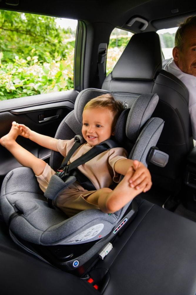 Avtosedež ima vrtljivo podlago za 360⁰, ki otroku omogoča potovanje tako v nasprotni smeri vožnje kot tudi v smeri vožnje. Staršem olajša tudi udobno namestitev in izstop otroka iz avtosedeža. Pomembno je vedeti, da je položaj, obrnjen nazaj, za otroka najvarnejši.