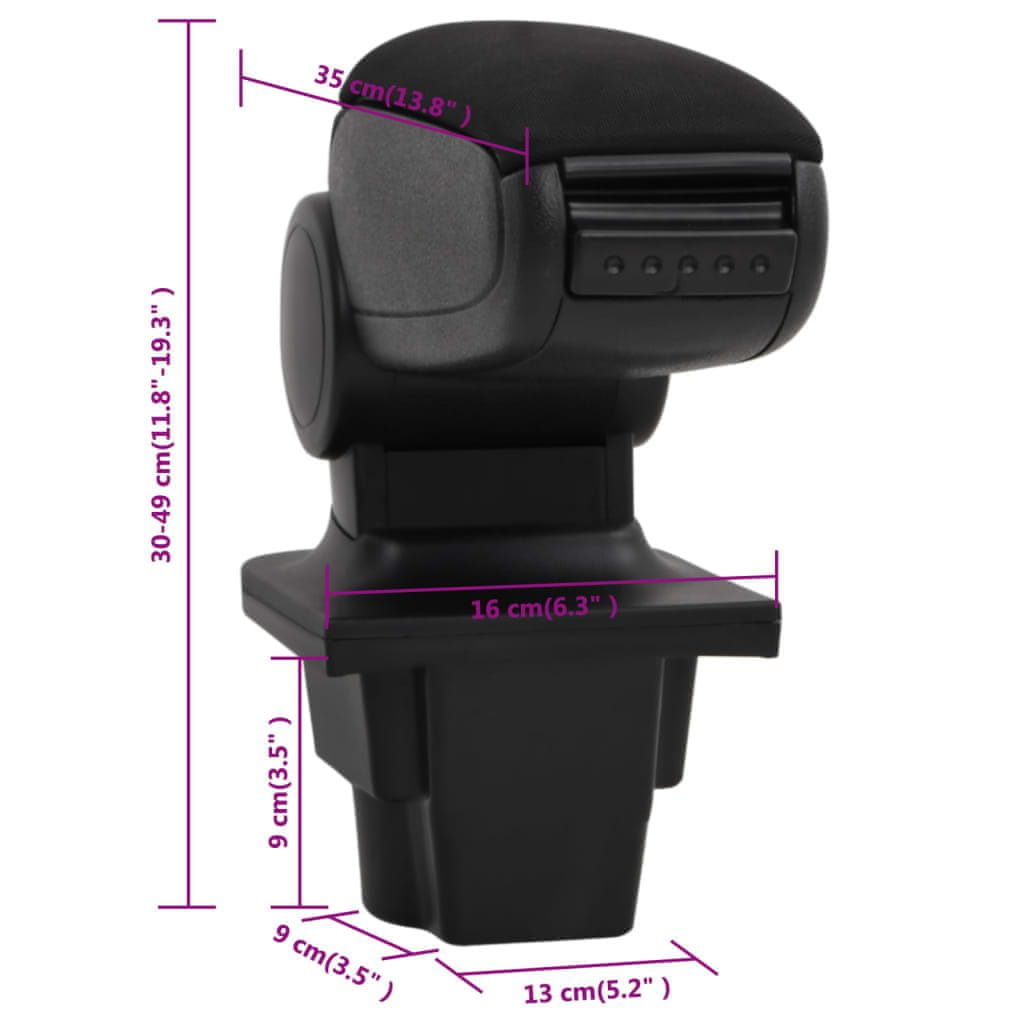 Vidaxl Naslon za roke za avto črn 16x35x(30-49) cm ABS